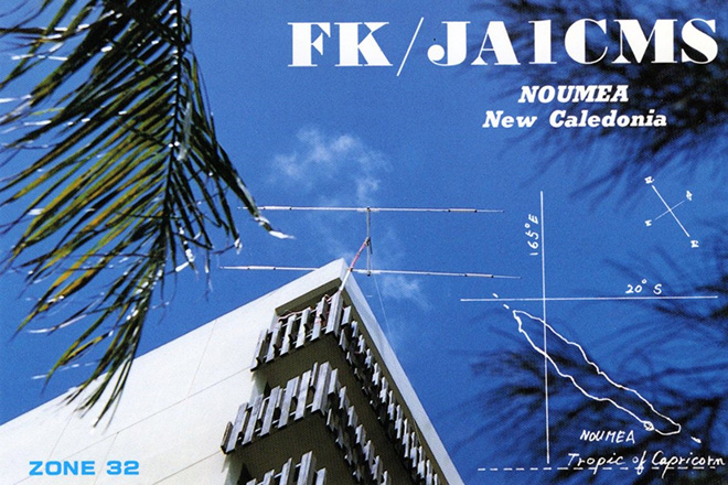 JA1CMS阿部克正氏はニューカレドニアでFK/JA1CMSの運用許可を得て運用したと、アンケートを寄せてくれた(写真8~10)。「1989年9月6日より9月11日まで運用。あらかじめ手紙にて運用許可を申請、現地に到着次第許可証を手渡すとのテレコムより通知を受けて出発。到着後許可証を受領。ヌーメアから21MHzのCWとSSBで運用、610局とQSOした。モービルハム誌1989年11月号を参照ください。(1989年12月記)」