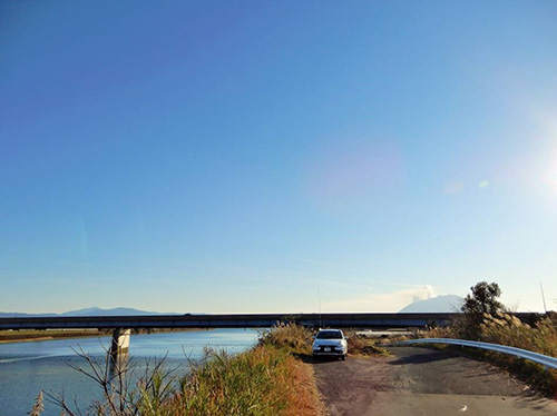 リクエストがあった霧島市に移動しました。ここは非常に広い市で、高い山も広い平地もあります。同じ時期に、霧島市でSOTAを運用中の移動局も確認できました。今回の移動はHFがメインなので、大きな川の河口付近の西側から、東側の水面反射で国内に電波を飛ばそうとする狙いです。