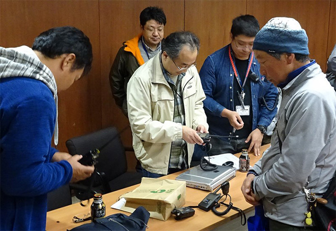 持参したD-STARハンディ機を使って、講習会で学んだ内容を確認する参加者たち