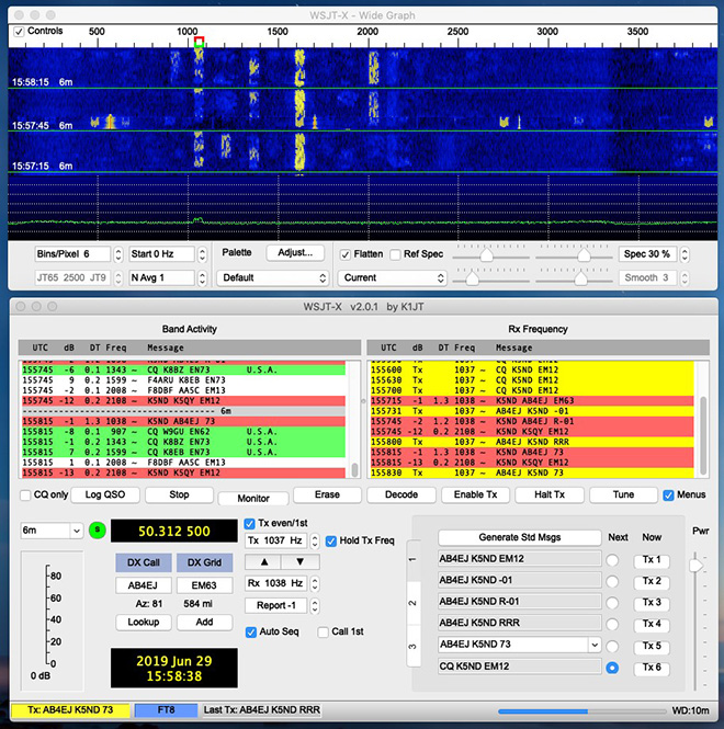 Looking at my log, I find that my first WSJT contact was via JT65 in June 2014. It was on 20 meters. My first 6 meter contact was only a few weeks later to HI8PLE — a new DXCC contact on the Magic Band. This was quickly followed by CX5BL, another new DXCC on six.