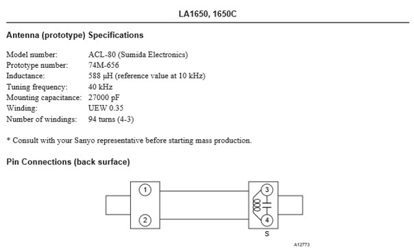 長波のJJYが話題になり始めた頃、当時の三洋電機から専用のIC LA1650が発売されました。興味があったのですぐに入手し、一緒に専用のバーアンテナも購入しました。このICはもう製造されていませんが、まだインターネットで見つけることができるかも知れません。このICは時計のアプリケーションを主に考えられたと思われ、電源も乾電池1本分の1.5Vで働き消費電流も500μA程度の省エネ設計になっています。