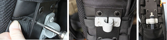 LC-192の側面に付いている板にネジ穴を設けてバインドを取付ける様子。M5の樹脂ネジを使って固定。