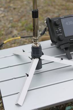 コンパクトで軽く部品代もかからないので、複数作っておけばマルチバンドの運用に便利だと思います。アンテナを柵などに固縛したり、ペグを打ち込んでガイラインを張って立てたりする必要が無く、場所も取りません。足の長さ次第で、かなり長いエレメントでも支えられます。強度も十分あるので、もし風で不安定だったら、基部に重みをかけることで安定させられます。
