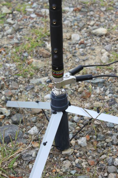 コメット『HFJ-350』(約160cm)を立てた様子。基部にラジアルを接続