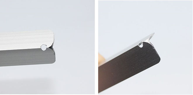 3) 穴のあるほうの尖頭にヤスリを掛けて丸くします。