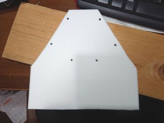 後日、樹脂プレート下部の真っすぐだった部分を斜めにカットして風の抵抗を大幅に削減しました。結果少し格好も良くなりました。