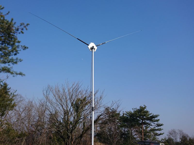 ローバンドではもしかするとホイップアンテナとして1本での使用の方がいいように感じました。しかし高い周波数のバンドでは、例えば5月に18MHzで運用した時はEスポが出ていたので多くのエリアの沢山の局と交信できました。50MHzでは水平偏波になり高く上げることで普通のダイポールアンテナと比較して遜色ない感覚で使うことができます。