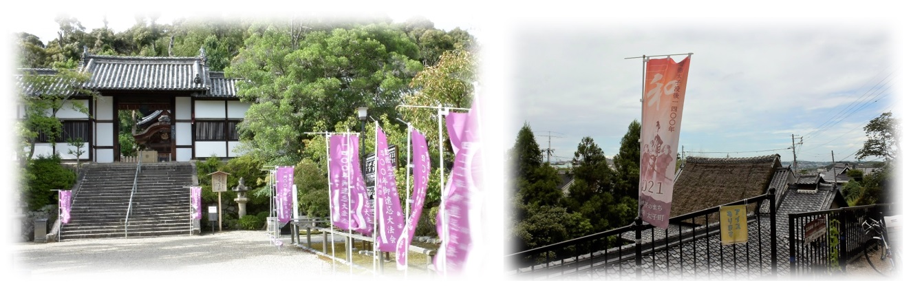 シルクロードの最東端、日本最古の官道1号線竹内街道沿道には聖徳太子磯長御廟もあります。今年は聖徳太子没後1400年になり、町のあちこちで記念事業の幟を見ることができます。100年前の没後1300年には、近鉄南大阪線喜志駅前に石碑が建立され、今年は同線上ノ太子駅前に聖徳太子像が建立されるとのことで盛り上がっています。