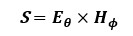 2章ではPrというスカラー量で説明しましたが、波源から半径rの球面を仮定したときの、その表面上の電力密度ベクトルS [W/m2]をポインティングベクトルと言います。|S |を球の表面全体に渡って積分すると波源が放射する電力値=アンテナへの給電電力になるのは先程述べたとおりです。ポインティングベクトルS は(式3-1)に示す通り、電界ベクトルE 、磁界ベクトルH の外積で導出されるベクトルであり、大きさは電力密度、方向は電磁波の進行方向を示します。