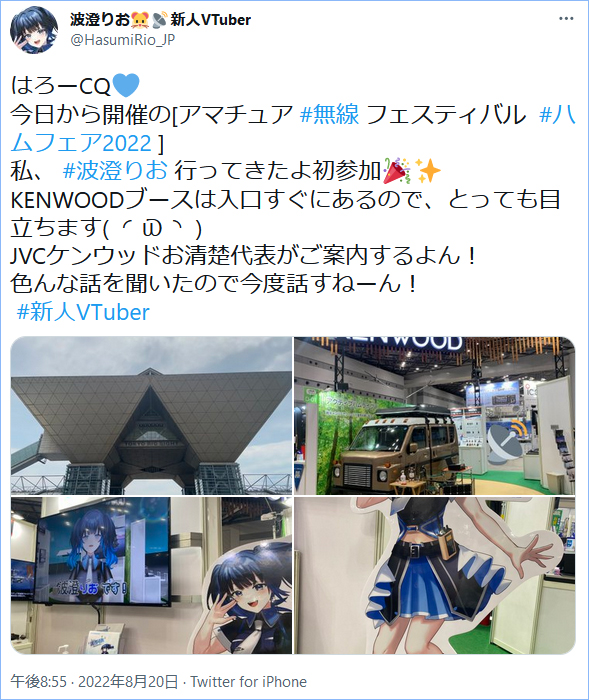 また8月20~21日に開催された「ハムフェア2022」のJVCケンウッドブースにも、波澄りおが登場し、同社ブースの展示内容と見どころの案内を行っていた。
