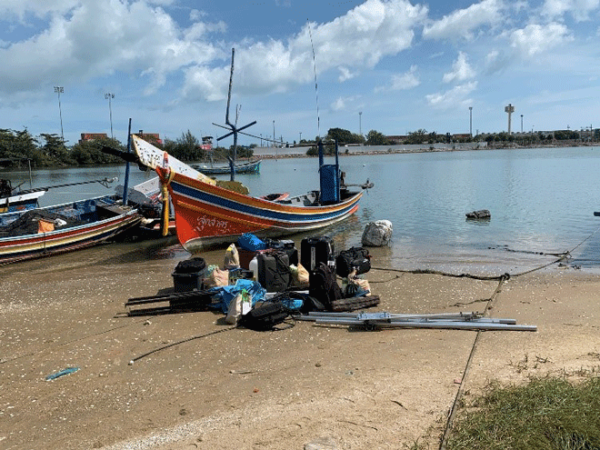 On 16th September 2022, the team met up with “Abang Yor” a close acquaintance of Noi HS3NBR and a local fisherman in Singhanakhon, Songkhla province at 9 am local time. After loading all the radio equipment, antennas, food, drinks, and petrol for the power generator boarded the boat, the team together with Abang Yor headed out to sea towards Maeo Island that is 4 km away.