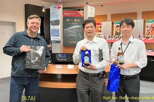 DL7JU visited the showroom of Icom's head office in Osaka. A monthly FB NEWS staff happened to be there and interviewed him.