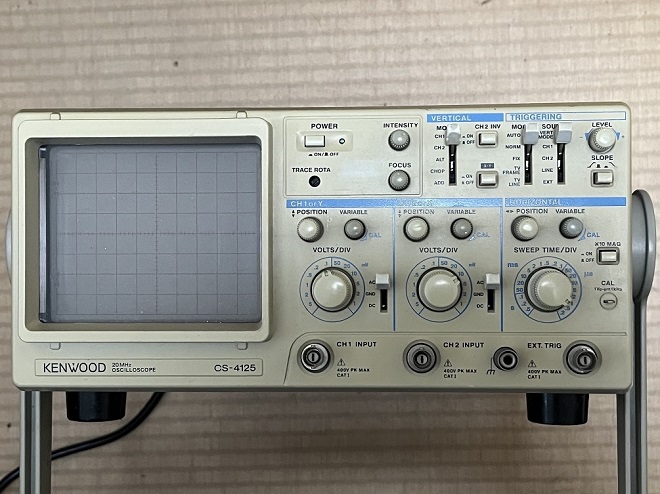 デジタルオシロスコープは便利ですね。でも私のところでは、まだこのアナログオシロスコープがあるためにデジタルオシロの出番が少ないです。このアナログオシロのようにボタンがいっぱいあるところが好きですね(無線機も同じで、スイッチのたくさんある装置がたまらなくいいですね。あくまでも個人の意見です)。