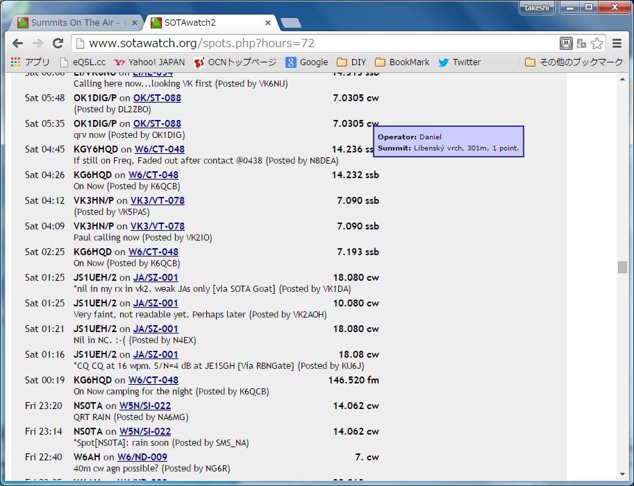 50MHzはこれまでに移動実績があったが、18MHzをアラートしたのは、VKとつながることを狙ったもので、そして、VK5CZ(Ian)とQSOができたのは大きな成果であった。