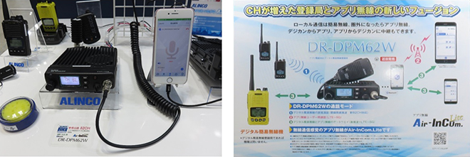 The DJ-X100 digital multi-mode receiver, released in mid-April of this year, and 144/430 MHz FM mobile and handy equipment were exhibited. The DR-DPM62W, a 351 MHz band digital simplex radio was also on display.