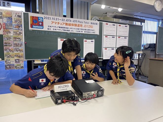 スカウト達は、430MHz FMやD-STARで交信を指導者に教えてもらいながら、自分の名前や質問を交えつつ交信を楽しんでいた。交信相手からの「どんな食べ物が好きですか?」や「スカウトの活動で楽しかったことは何ですか?」といった質問には自分で答えを考えて応答していた。また、ほかの会場とはD-STARのターミナルモードによる接続で、接続先のスカウト達と交信を楽しんだ。