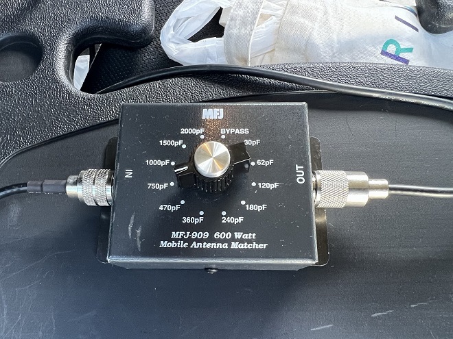 マッチングは共振点をワニ口クリップの接続する位置とロッドアンテナの長さで、インピーダンスはMFJのマッチングボックスで調整しています。