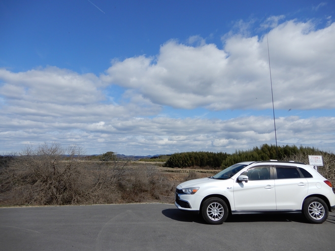 まず、一郡一村で需要があるだろうと調べておいた那珂郡東海村のパーキングエリアまで移動すると、気温が次第に上がって雪は溶けそうな気配でした。周囲は混雑していたので、モービルアンテナ基台に直結できるタイプの自作アンテナでHFとサテライト通信を運用し、気温の上昇を待ちました。