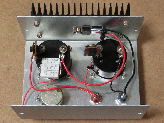 今まで電源の自作を行い、その試験をする電源用ダミーも自作しました。いろいろと作ったのですが、その中で1~2A程度の電源用ダミーが弱点と感じていました。実験用電源の試験用としては、一番使いたいところだと思います。そこで、写真1のように改めて作製しました。