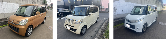 移動運用で使えるトールワゴン 左からスペーシア、N-BOX、ルークス