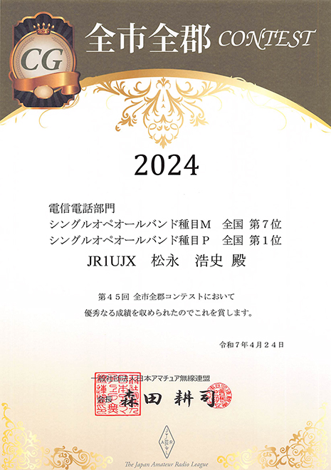 • ・ 部門がシングルオペ/マルチオペではなく、個人局/社団局で区別されております。個人局が社団局部門、社団局が個人局部門に参加することはできませんのでご注意ください。