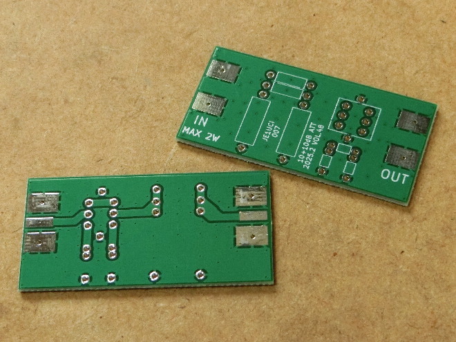 写真4 10+10dBのアッテネータ用基板 部品面とハンダ面