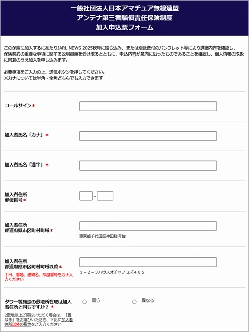 なお、タワーが2基以上ある場合も、同一敷地内であれば1か所として計算される。詳しい案内は「JARL NEWS」2025年秋号(10月発行)に掲載されているほか、JARL Webの案内ページ(https://www.jarl.org/Japanese/5_Nyukai/Hoken/antena.htm)でも紹介されている。