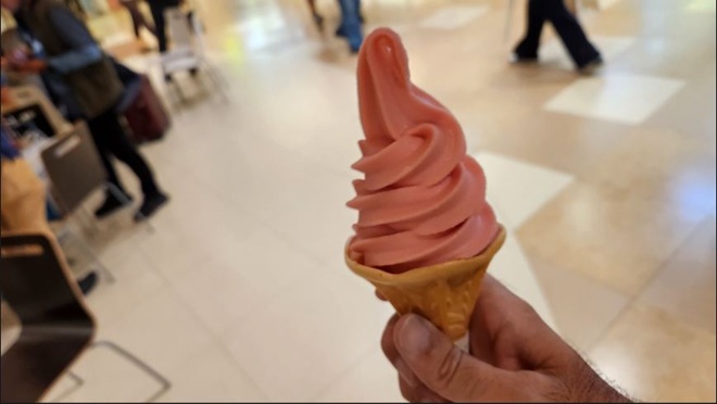 JR北海道のホームページを見ると低気圧の影響で広い範囲で運休や30分以上の遅延が発生しているとのことで、イベント景品をゲットしたあと、早々に会場をあとにすることにしました。駅で運行状況を確認すると定刻で運行しているようだったので2項(3)に記述したように再び「そらのひろばステラ9」を訪れました。新千歳空港到着後は遅めの昼食(寿司とデザート? にハスカップソフトクリーム)と土産購入を行い、内地に戻りました。