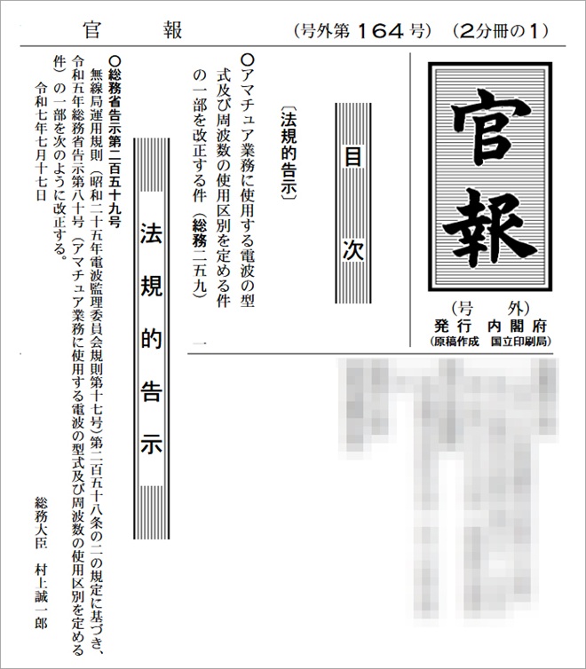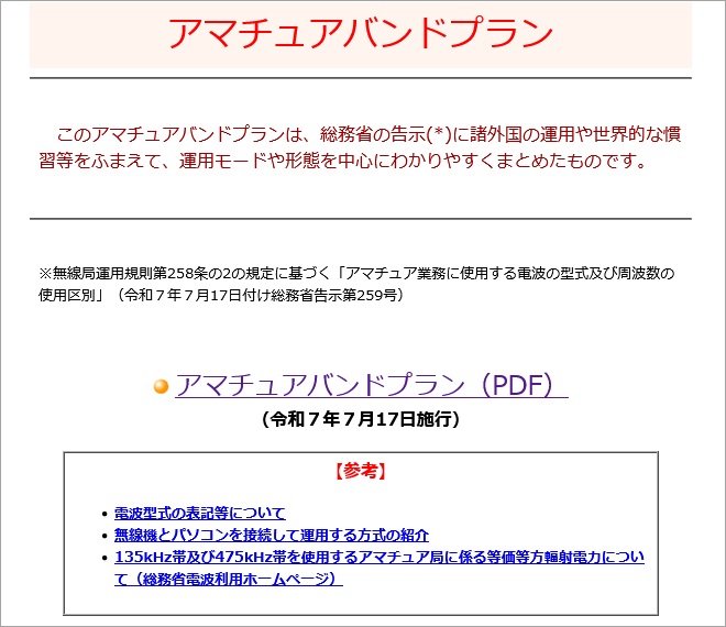 理事会で承認されたことから、JARL事務局は2025年10月中旬、公式サイトのJARL Webに改正した「アマチュアバンドプラン」のPDF版を公開した。施行日は総務省が改正を公布・施行したのと同日の7月17日としている。