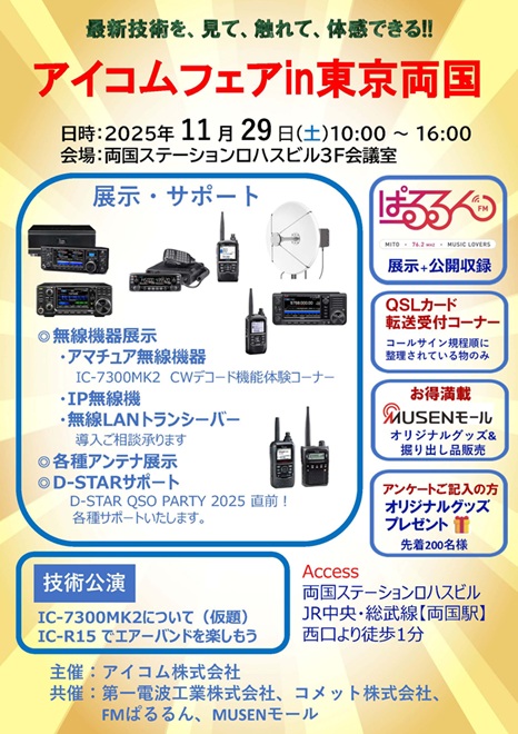 このイベントの最新情報はアイコムのホームページを参照されたい。
