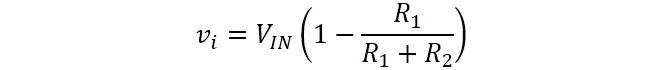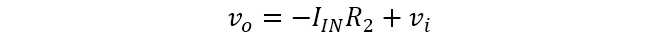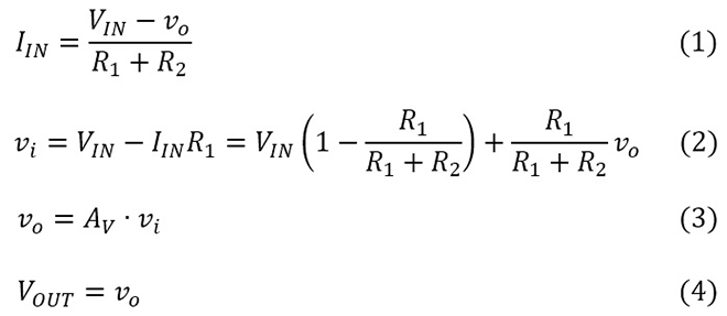 図2において、入力電圧VIN は増幅器には直接入力されず、直列抵抗R1 を介して入力されます。増幅器は電圧増幅度AV =