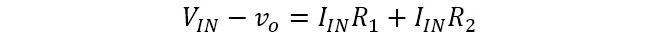 R1 とR2 で負帰還回路を構成しています。回路の入力に電圧VIN が印加されると、R1 を介して増幅器の入力に電圧