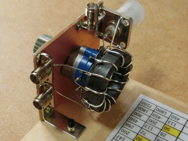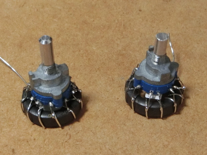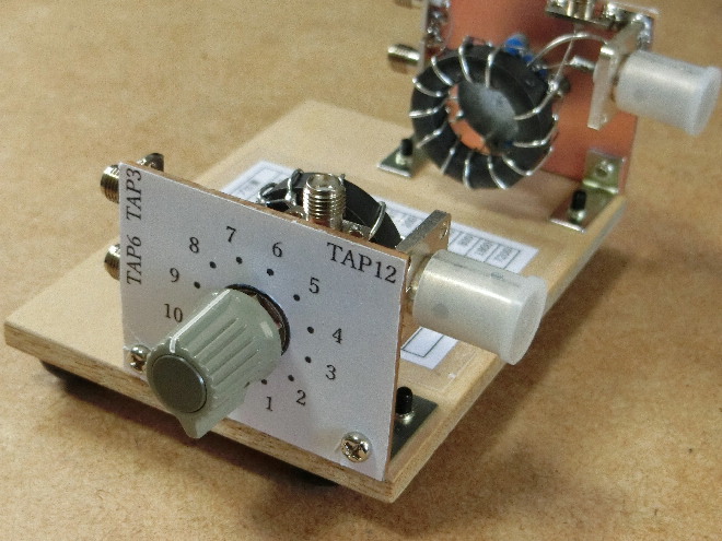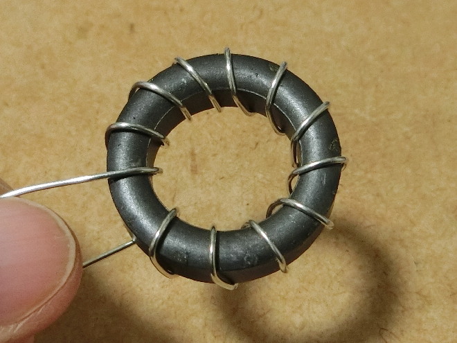 電力的には最大でも0dBm程度ですので、小型のコアで充分です。しかし、構造的にはロータリースイッチの裏側に置くため、大きい方が作りやすくなります。そこでFT-114 #43を用い、写真2のようにスズメッキ線でコイルを12回巻きました。これならどこでもハンダ付けができます。