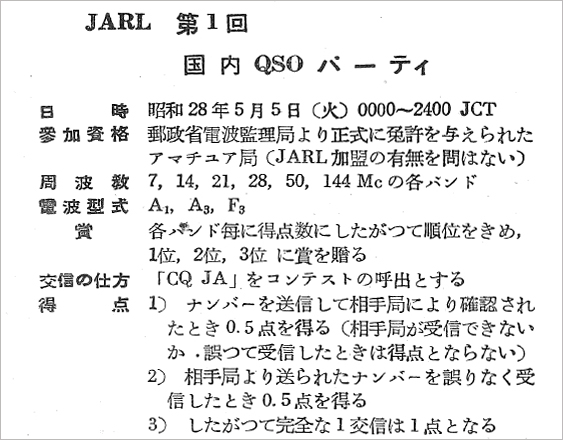 1953年5月5日に「第1回 国内QSOパーティ」が開催された(「JARL NEWS」1953年3月号より)