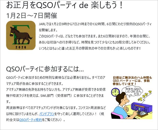 案内ページ「お正月をQSOパーティ de 楽しもう!」も読んでおこう