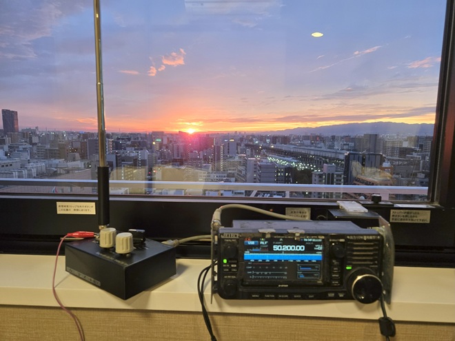 平日の夕方から夜は新大阪駅そばのホテルの部屋(32階中17階)にて50MHz・SSB、144MHz・SSB、430MHz・FMにQRVしましたが、やはり50MHzでのQSOはできませんでした。