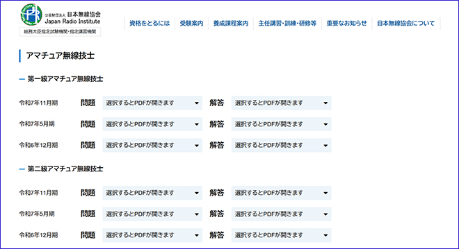 出題された試験内容と正答は、試験実施から数日後に、日本無線協会のWebサイトにある「試験問題と解答」コーナーにPDFで掲示されるので、チェックすると自己採点に役立つだろう。