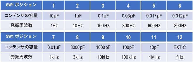 図7. ロータリースイッチのポジションと発振周波数の対応表