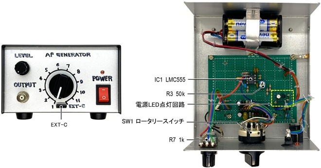 図11. 完成したオーディオ・ジェネレーターの正面と内部