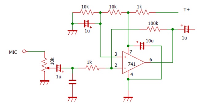 マイクアンプは、図1のようなオペアンプを使ったオーソドックスな回路でした。