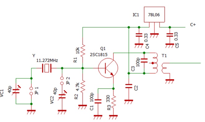 次にキャリア発振回路ですが、図3がオリジナルです。水晶によっては周波数が合わせられない時がありました。また、電源の安定化に6Vのツェナーダイオードを使っていました。