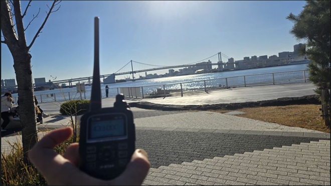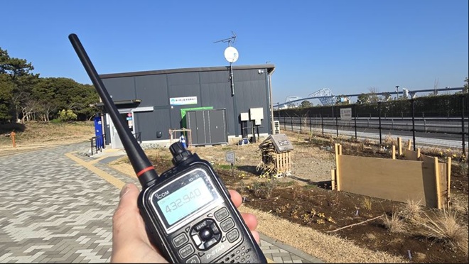 - (ア)中央林間駅・駅前QRVのあと東急田園都市線・大井町線、JR線を乗り継ぎ、リベンジ運用のため葛西海浜公園を訪れました。今回はちゃんと葛西渚橋を渡りたどり着きました。運用時間は45分ほどでした。CQを出し始め2局と交信ができ、その後、相模原市、八王子市のCQに応答してコールするも応答がありませんでしたが、強い信号のCQに応答するとコールバックがありQSOが成立しました。