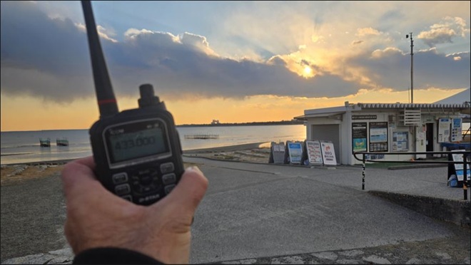 今回は受信できる局を呼ぶ戦法? はダメだと感じ、ダメもとでCQを出してみました。3分くらい空振りのCQを出しているとかすかにこちらをコールする声が聞こえました。状況はリグを傾けて、聞こえる位置にリグを固定して信号が聞き取れる状態です。それでもレポート交換ができ交信が成立しました。その後、CQを継続しましたがコールされることはありませんでした。貴重な交信に感謝です。今回の移動運用は1か所だけなので運用時間に制限はありませんでしたが、そんなこんなで1時間ほど経過していたことから切り上げる前に再度バンド内をワッチすると安定して入感する信号が聞こえたのでコールしてみました。コールバックがあり2局目の交信実績ができました。これで悔いを残すことなく帰宅することができました。