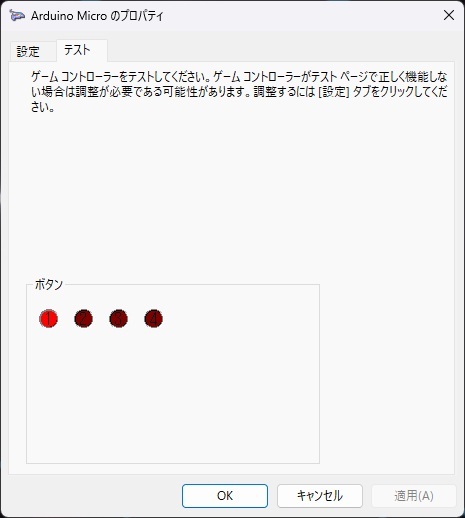 「Arduino Micro」ゲームパッドのプロパティ