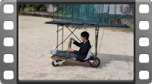 「はい、1人乗りの3輪ソーラーカーです。太陽光パネルで起こした電気だけでモーターを回して走るんです。バッテリーは積んでいません。光のエネルギーだけで走るエコな車なのですが、曇ると動かなくなります!(笑)」