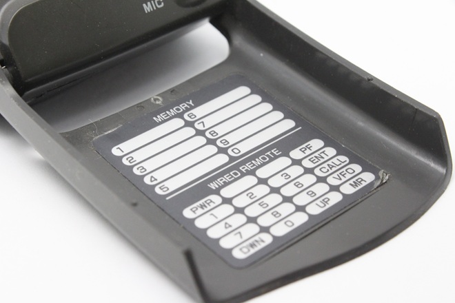 キーパッドカバーには簡易電話帳を模した「メモリーチャンネルの周波数メモ欄」がある。その下には、本機をモービル機のリモコンとして使う際のキー配列が書かれている