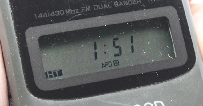 表示部は小型のLCD。"HT"表示は「無線機モード中」という意味("Handheld Transceiver"?)