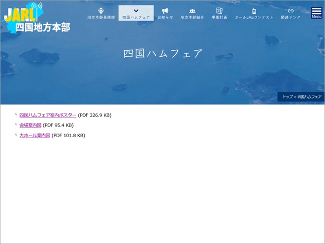 JARL四国地方本部ホームページ内の「四国ハムフェア」案内ページ