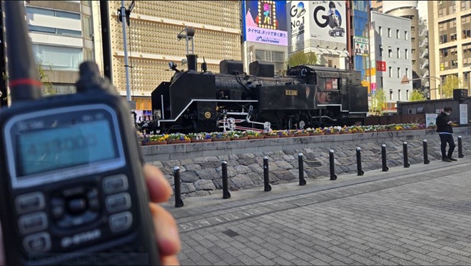 サラリーマンの街頭インタビューの定番の地、SL広場にて30分程度の運用でした。以前、行った50MHz・SSBでの運用場所と同じ場所での運用でした。