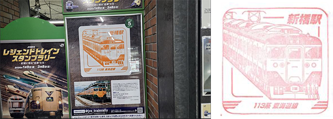 左: 新橋駅スタンプ台 右: 新橋駅113系